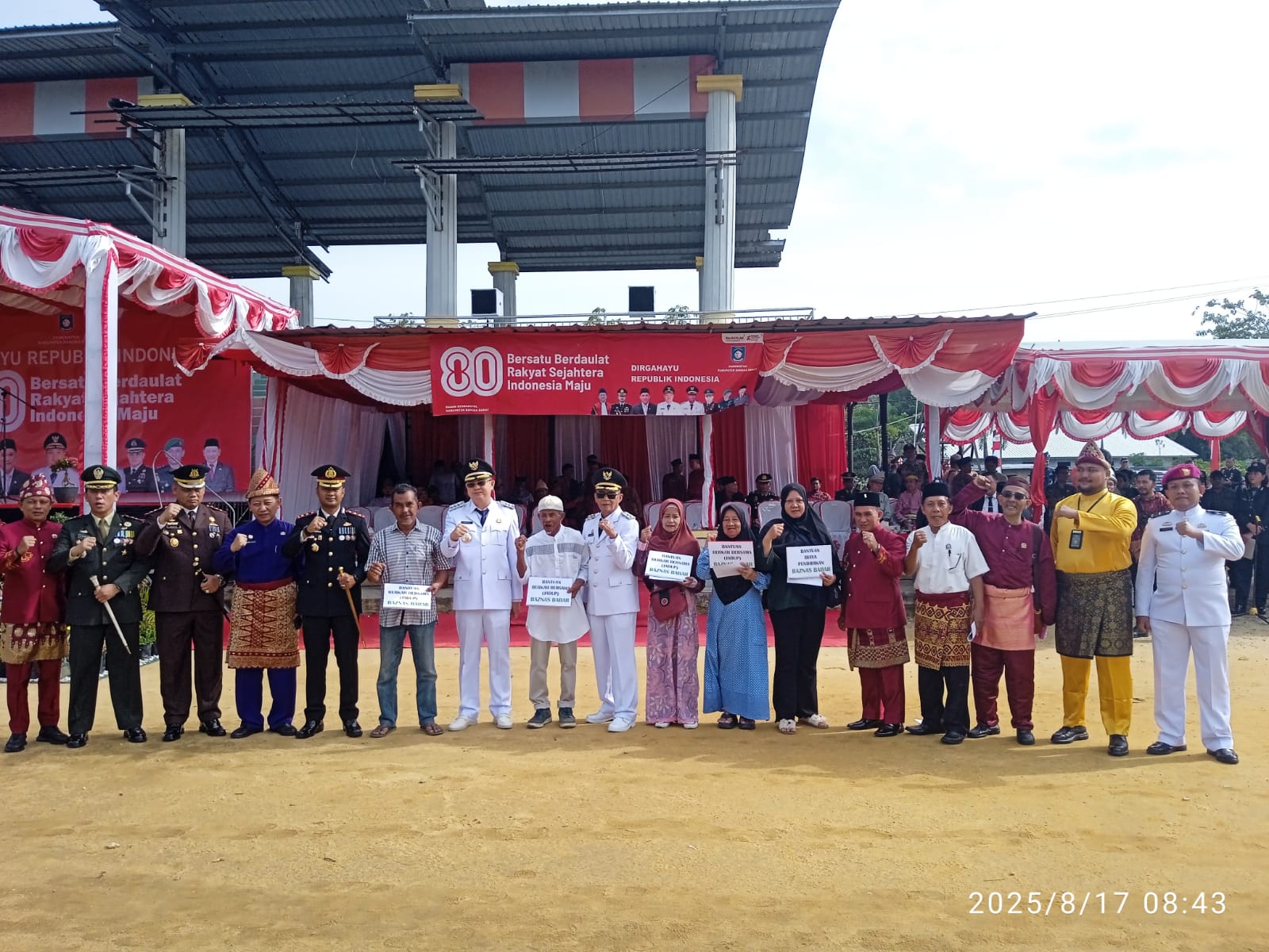 Mentok, Bangka Barat – Langit cerah pada Sabtu pagi, 17 Agustus 2025, menaungi ribuan pasang mata yang tertuju ke Lapangan Atletik Kompleks Pemkab Bangka Barat. Derap langkah pasukan pengibar bendera, kibaran merah putih, dan tepuk tangan masyarakat menjadi irama utama peringatan HUT ke-80 Republik Indonesia. Namun, di balik gegap gempita itu, terselip sebuah adegan yang lebih dalam maknanya: penyerahan santunan kemanusiaan oleh Badan Amil Zakat Nasional (Baznas) Bangka Barat.