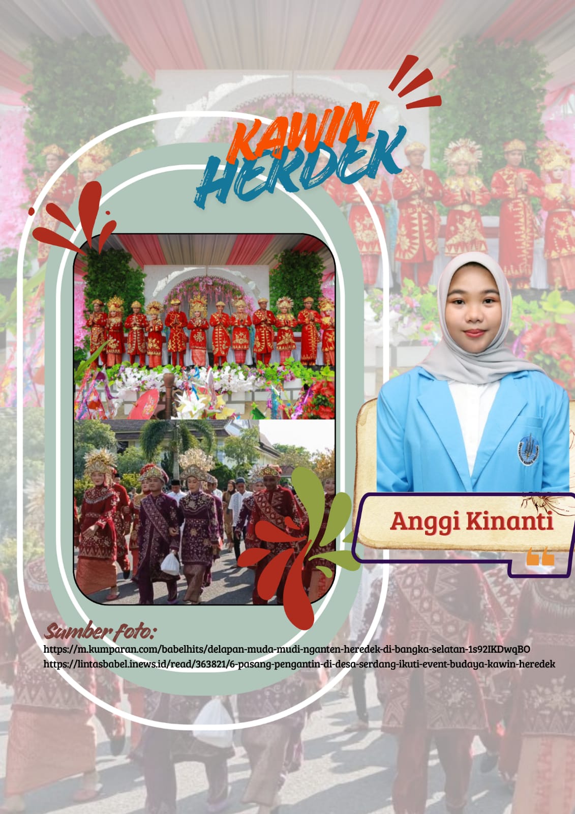 Bekaespedia.com. Kabupaten Bangka Selatan memiliki semboyan Junjung Besaoh yang menggambarkan semangat kebersamaan masyarakatnya. Salah satu tradisi unik yang mencerminkan nilai tersebut yaitu tersebut adalah Kawin Herdek, yaitu tradisi pernikahan massal yang dilaksanakan secara adat dan turun-temurun oleh Masyarakat Desa Serdang.