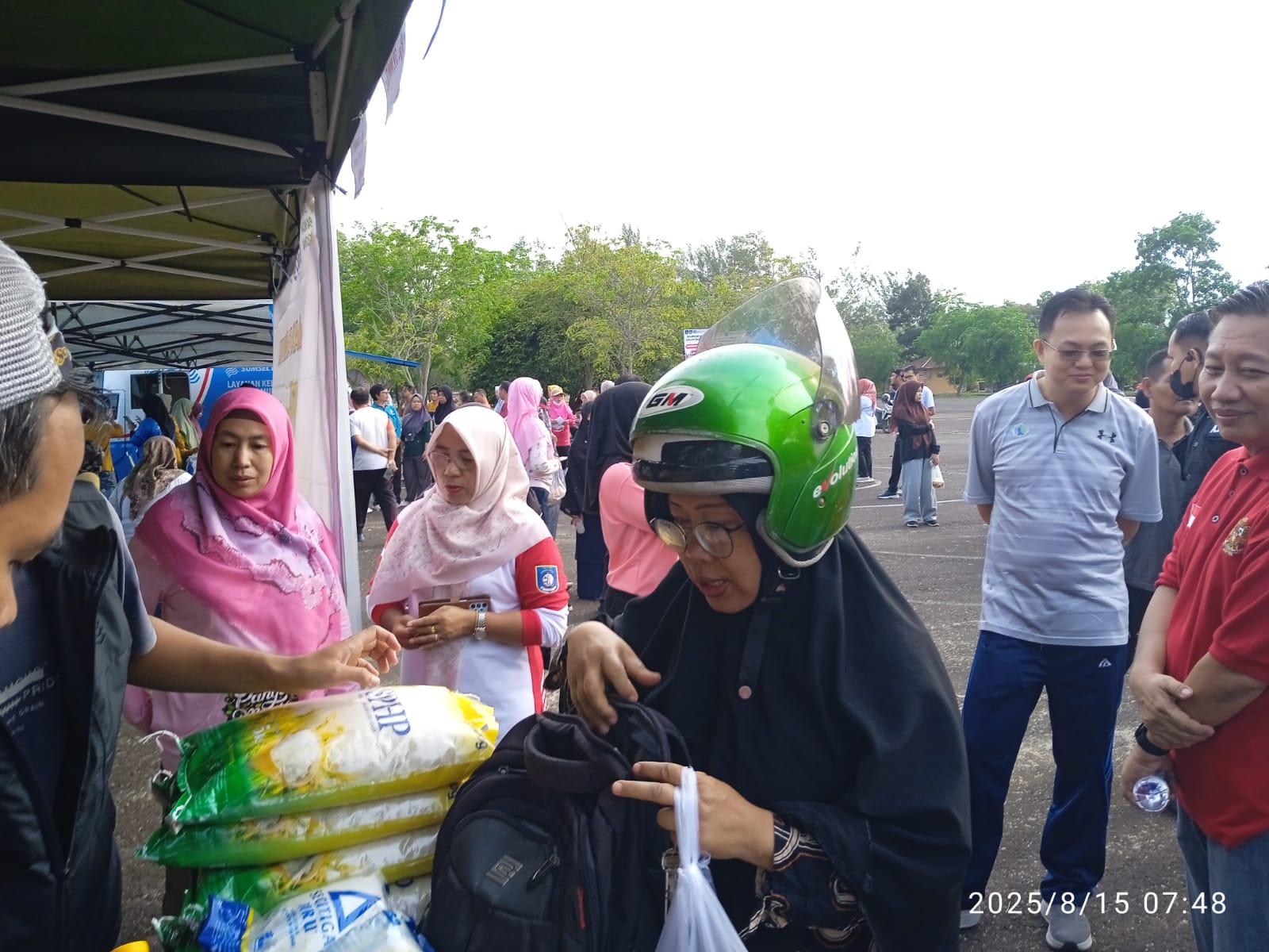 Suara riuh transaksi berpadu dengan deru printer dari stan pelayanan pajak, ketikan keyboard, dan aroma seduhan kopi serta kue panas. Tak jauh dari sana, stan kesehatan gratis dari Jasa Raharja ramai didatangi warga yang memeriksa tekanan darah dan gula darah. Di ujung lapangan, pasar murah pangan yang digelar Bulog dan Dinas Pertanian menjadi magnet tersendiri—beras, gula, minyak goreng, dan telur berpindah tangan dengan harga terjangkau, sebagian bahkan dibayar lewat QRIS.
