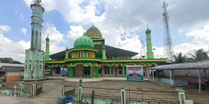Masjid Nurul Falah, Dalil yang kini megah dengan warna hijau berpadu dengan warna kuning disertai satu menara terpisah dari bangunan masjid di sisi barat daya dan dua menara yang di sisi timur dan barat. Lokasi masjid tersebut sama persis dengan posisi masjid pada peta tahun 1933, Dalil, D D 29,59 opgenomen door den Topografischen Dienst in 1932. Blad 34/ XXIV i.