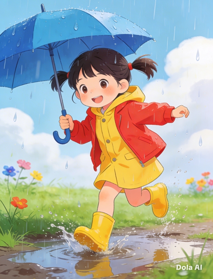 “Ayo kita gunakan jas hujan dulu. Kalau kita tunggu hujannya bisa lama!”