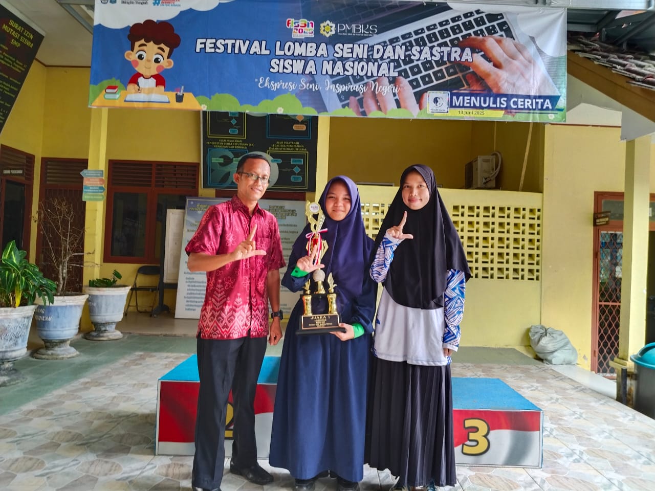 Bekaespedia.com. Namang_Fatimah Naurah Muhammad, siswi MTs Negeri 1 Bangka Tengah berhasil lolos ke tingkat nasional setelah keluar sebagai juara pertama pada ajang Festival Lomba Seni dan Sastra Siswa Nasional (FLS3N) Tahun 2025 jenjang SMP sederajat cabang Menulis Cerita. Dia berhasil memperoleh nilai tertinggi dengan jumlah 261.300. Peringkat kedua diraih oleh Steve Antonio Dermawan dari SMP YPK Air Kenanga Sungailiat dengan jumlah nilai 258.149. Juara ketiga atas nama Meizi Afsanda dari SMPN 1 Mentok dengan jumlah nilai 220.099.