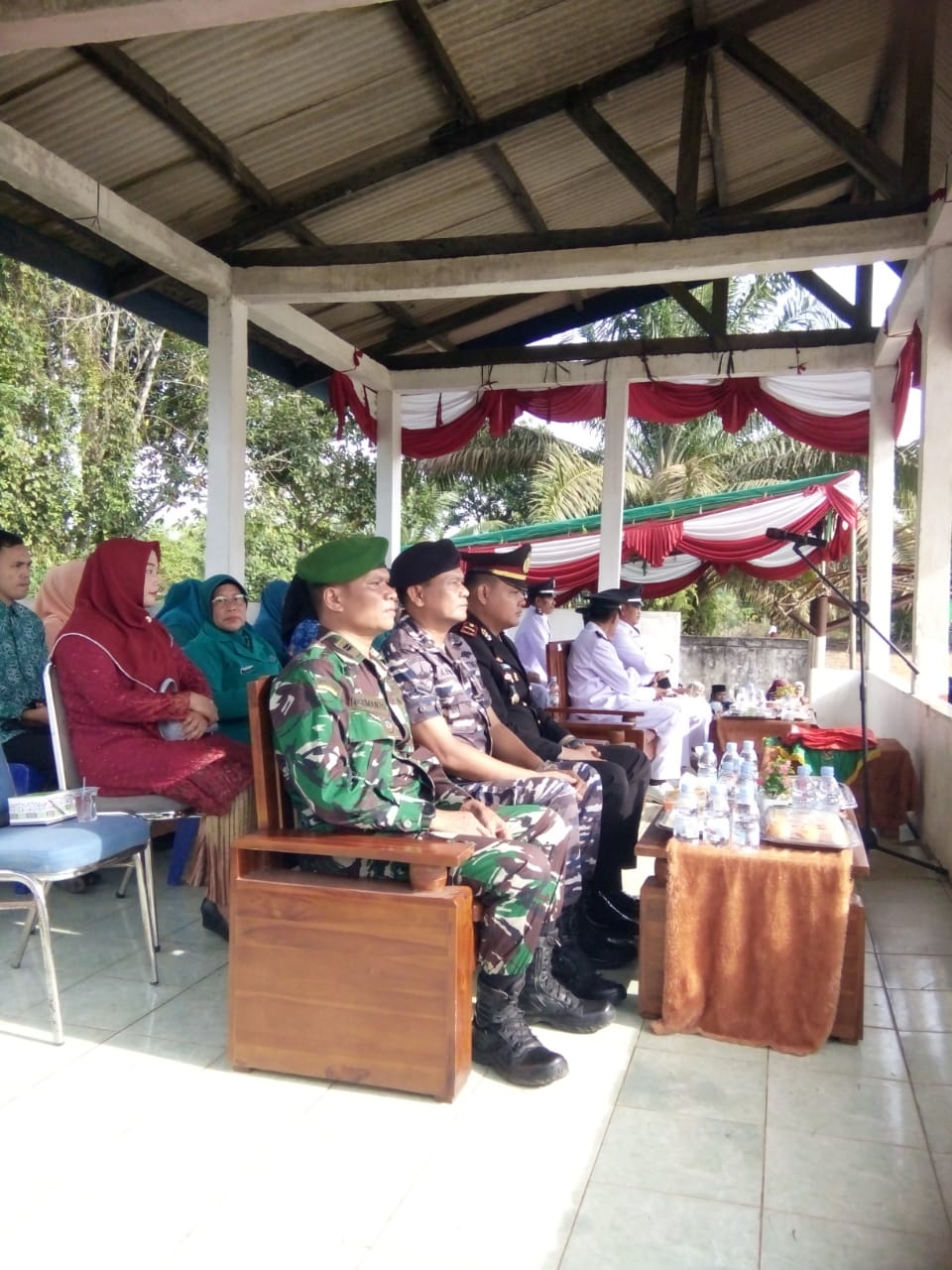 Hadir dalam upacara memperingati Hari Ulang Tahun Republik Indonesia ( HUT RI ) ke 80, Kapolsek Tempilang, Ipda. M. Deni Irawan, SH, beserta anggota, Damramil Kelapa Tempilang beserta anggota, Danposmat TNI-AL, Danpos Ramil TNI-AD Tempilang,Staff Puskesmas Tempilang, Staff KUA Kecamatan Tempilang, Kepala SMAN/SMKN se Kecamatan Tempilang, Kepala Sekolah SMA Nurul Huda Tempilang, Pondok pesantren Uwais Alqorni Tempilang, Pondok pesatren Madinatul ‘Ilmi Sangku, Kepala SMPN/MTs se Kecamatan Tempilang, Kepala SDN se Kecamatan,Tempilang. Tokoh Masyarakat, Koordinator Penyuluh Pertanian Kecamatan Tempilang, Koordinator Perikanan Kecamatan Tempilang, Koordinator UL Capil Kecamatan Tempilang, Koordinator UL BP2RD Kecamatan Tempilang, Kepala MI Khairul Ummah, Kepala TK/PAUD se Kecamatan Tempilang, Ketua TPKK Kecamatan Tempilang, Ketua Bhayangkari, Ketua Persit dan anggota DanPos Ramil Tempilang, Ketua PKK se Kecamatan Tempilang, Koordinator Penyuluh KB Kecamatan Tempilang, Koordinator Penyuluh Pernikahan Kecamatan Tempilang, Direktur BumDes dan Pengurus KDMP se Kecamatan Tempilang, Orang Tua/Wali Padkibraka, Purnabakti PNS se Kecamatan Tempilang, Ketua Majlis Ta’lim Kecamatan Tempilang dan Linmas se Kecamatan Tempilang.