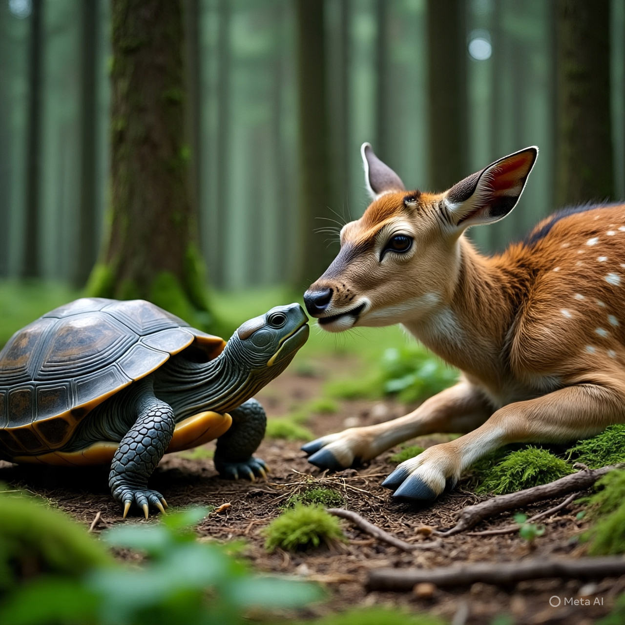 “Kura-kura, tolong aku!” rusa meminta tolong dengan mata berkaca-kaca.
