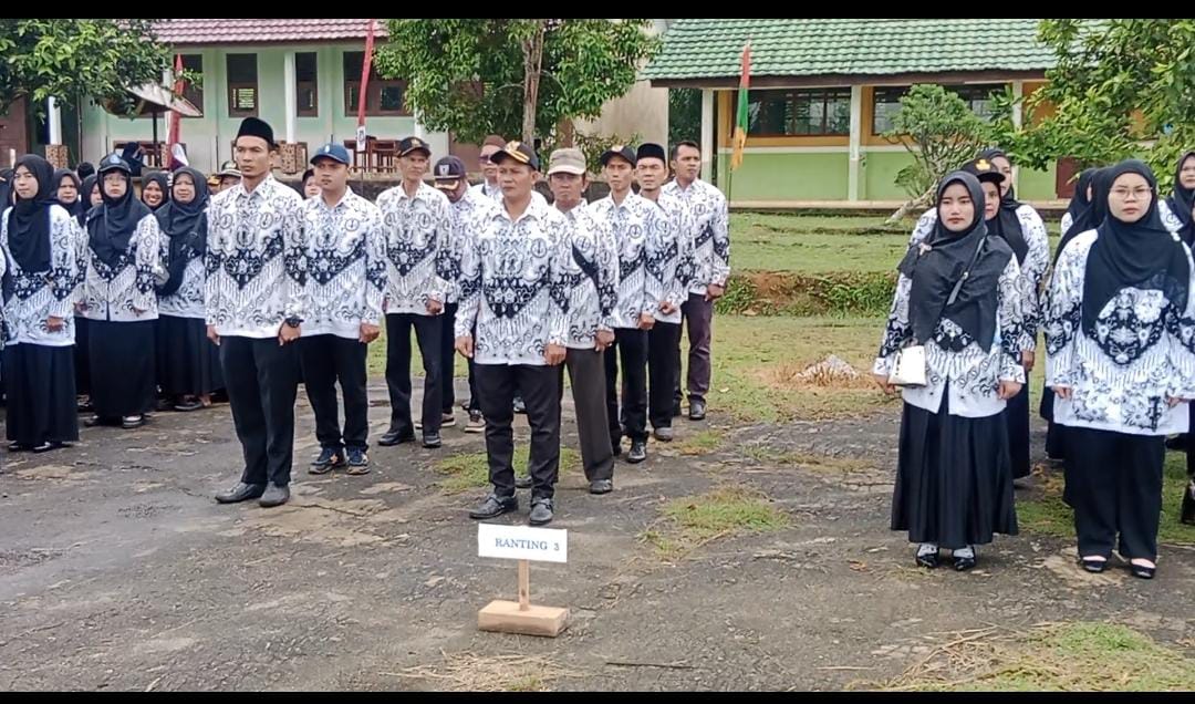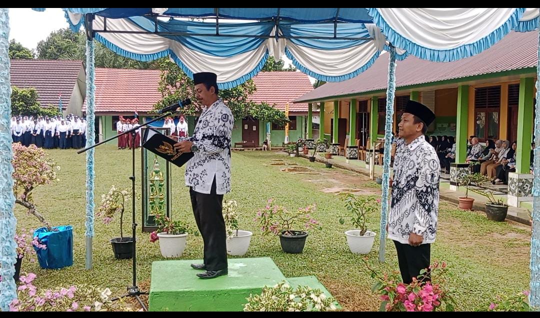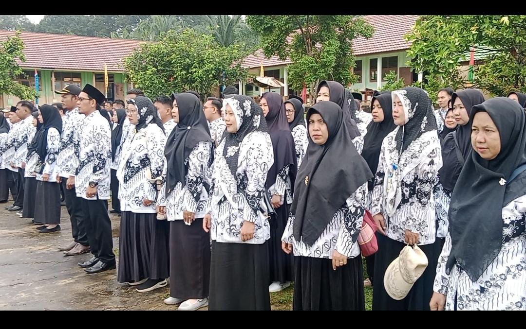 Pembina upacara Syamsiar, S. Ag, ketua PGRI kecamatan Simpang Rimba menyampaikan amanat tertulis dari Prof. Dr. Abdul Mu’ti, M.Ed Menteri Pendidikan Dasar dan Menengah Republik Indonesia,