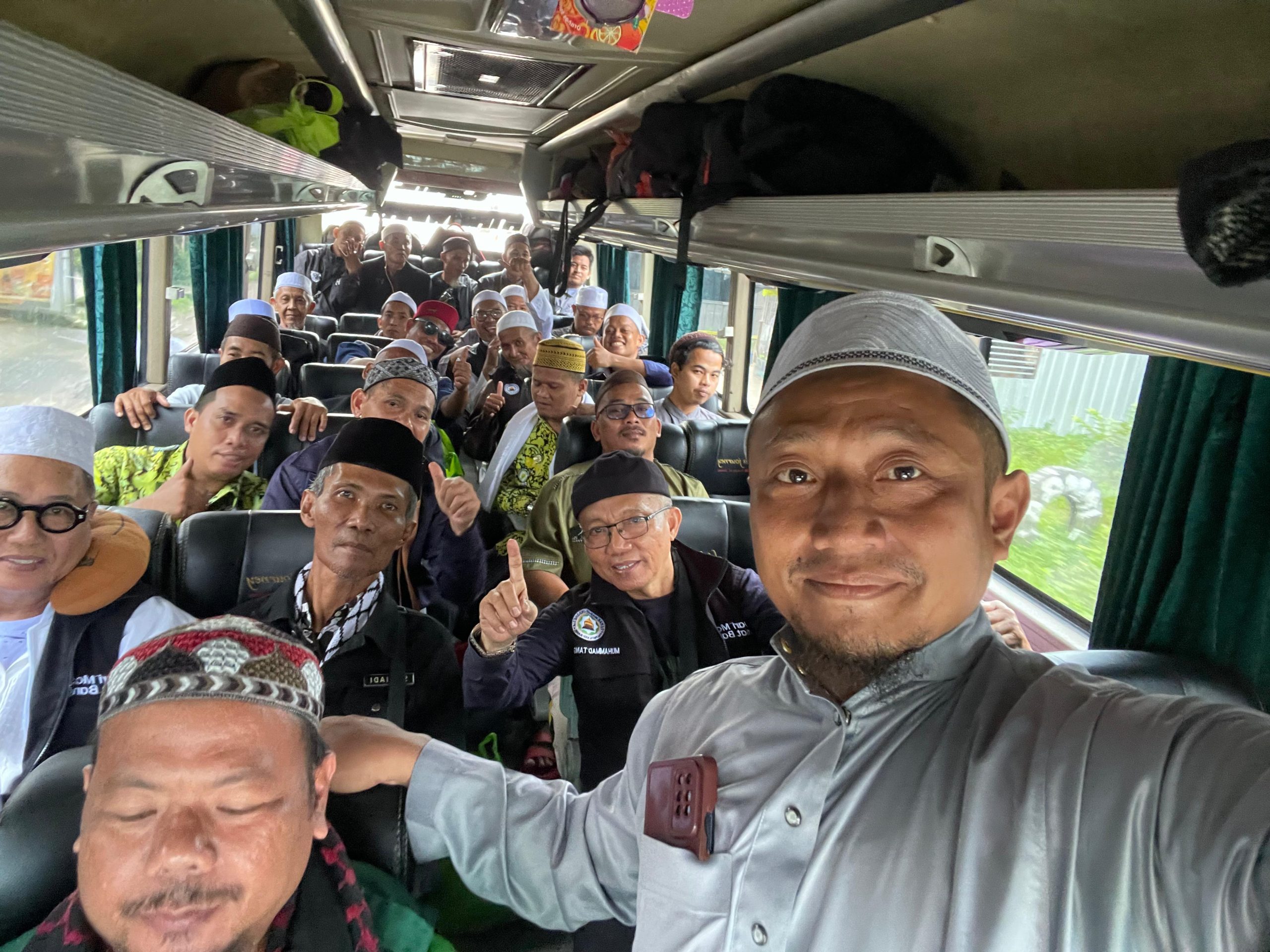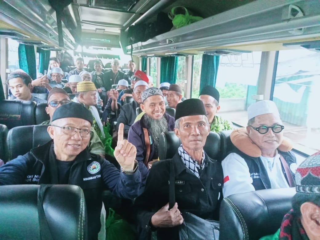 Peserta menaiki bus bersama rombongan jamaah dari Bangka lainnya yang juga menuju agenda serupa.
