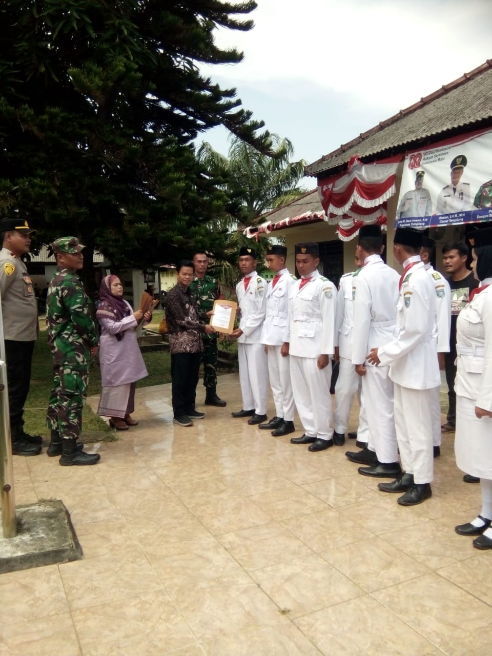 Resepsi penutupan dan pembubaran panitia rangkaian Hari Ulang,Tahun ke 80 Kemerdekaan Republik Indonesia berlangsung hikmad dan meriah dengan penampilan tari pekuleh utusan dari SMPN 4 Tempilang.