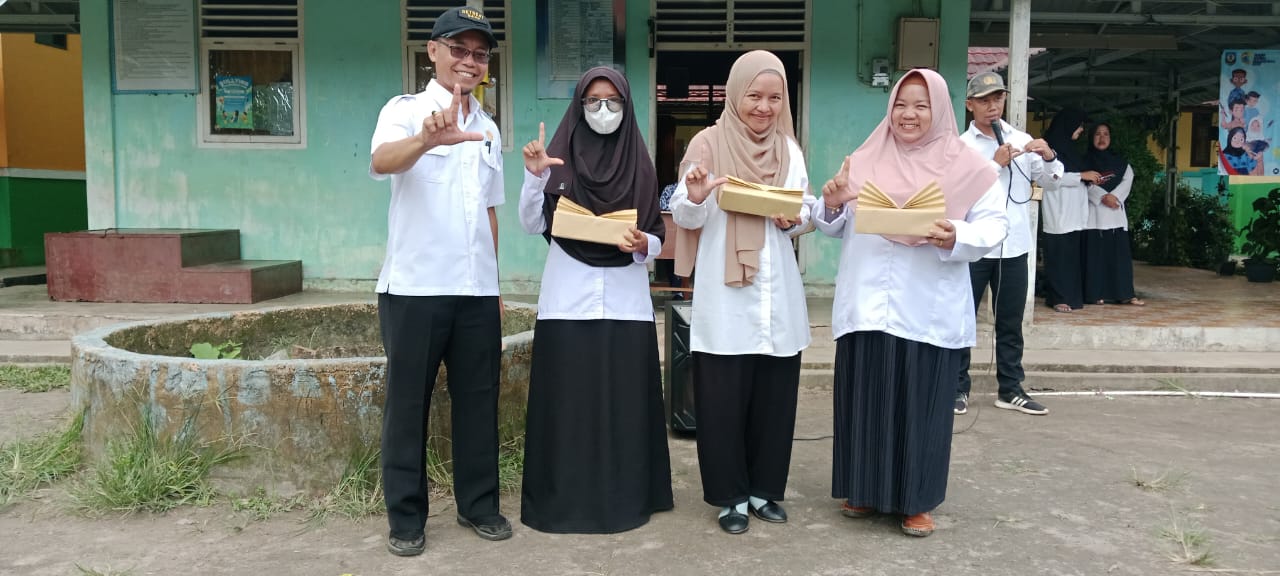Bekaespedia.com. Tukak Sadai_Guna memberi motivasi dalam meningkatkan karya dalam menulis, Kepala SMPN 1 Tukak Sadai Ponco Hardiyanto memberikan hadiah kepada tiga guru penulis terfavorit yang mengabdi di SMPN 1 Tukak Sadai, Selasa (25/11).